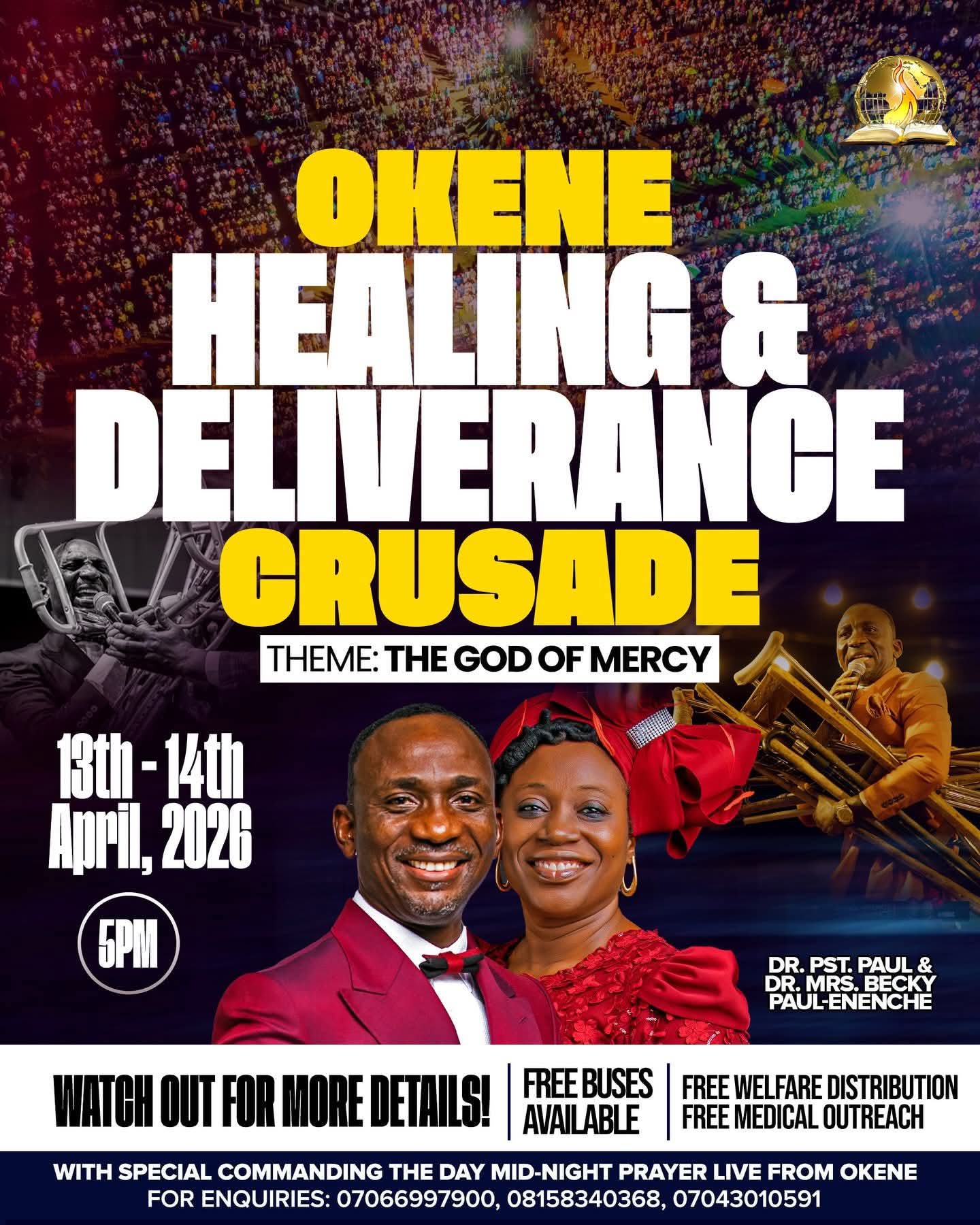 According to a flier shared on the official page of the Church, the crusade has been scheduled for April 13th – 14th, 2026; featuring free medical support, free welfare and transportation for attendees.
